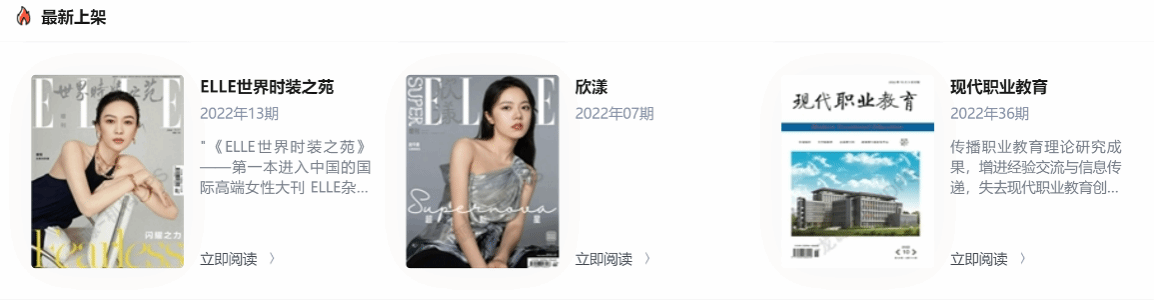 ●期刊,期刊同时具备文本和原貌两种阅读版本,可以按照阅读喜好选择相应按钮点击阅读。如当前期刊缺少某一阅读版本,则仅显示一个版本阅读按钮。